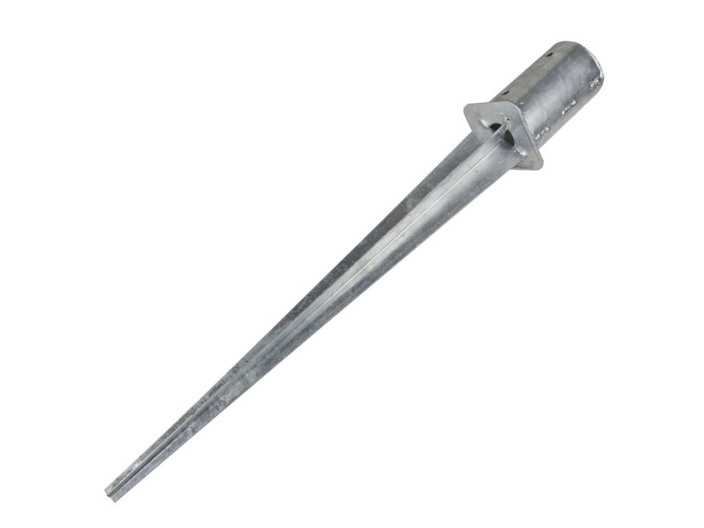 Zemný klin s kruhovým priemerom, vhodný na stavbu plotov, výbehov, montáž stĺpov pre prístrešky pre autá, palisád v záhradách, terasách a pri terénnych úpravách. Komplet pozinkovaný, so 4 otvormi pre priečne upevnenie.Zemný klin s kruhovým priemerom, vhodný na stavbu plotov, výbehov, montáž stĺpov pre prístrešky pre autá, palisád v záhradách, terasách a pri terénnych úpravách. Komplet pozinkovaný, so 4 otvormi pre priečne upevnenie.