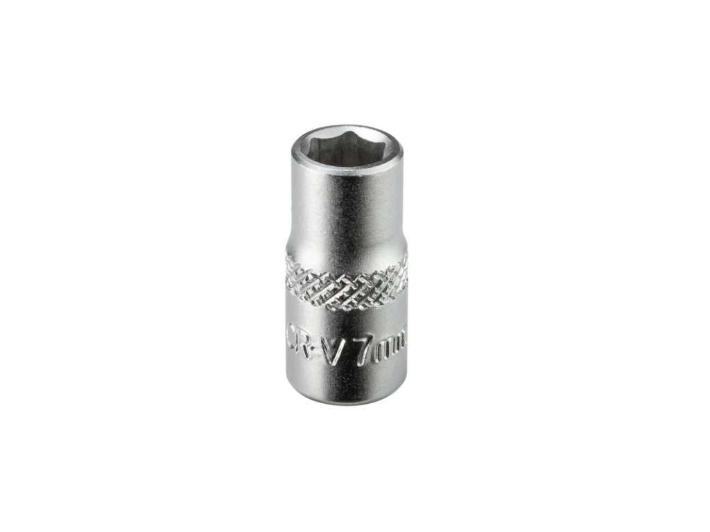 Šesťhranný nástrčkový kľúč, krátke prevedenie, z chróm-vanádiovej ocele, pochrómovaný povrch, kosouhlo vrúbkovaný. Šesťhranný nástrčkový kľúč, krátke prevedenie, z chróm-vanádiovej ocele, pochrómovaný povrch, kosouhlo vrúbkovaný.Otvor kľúča: 7 mm