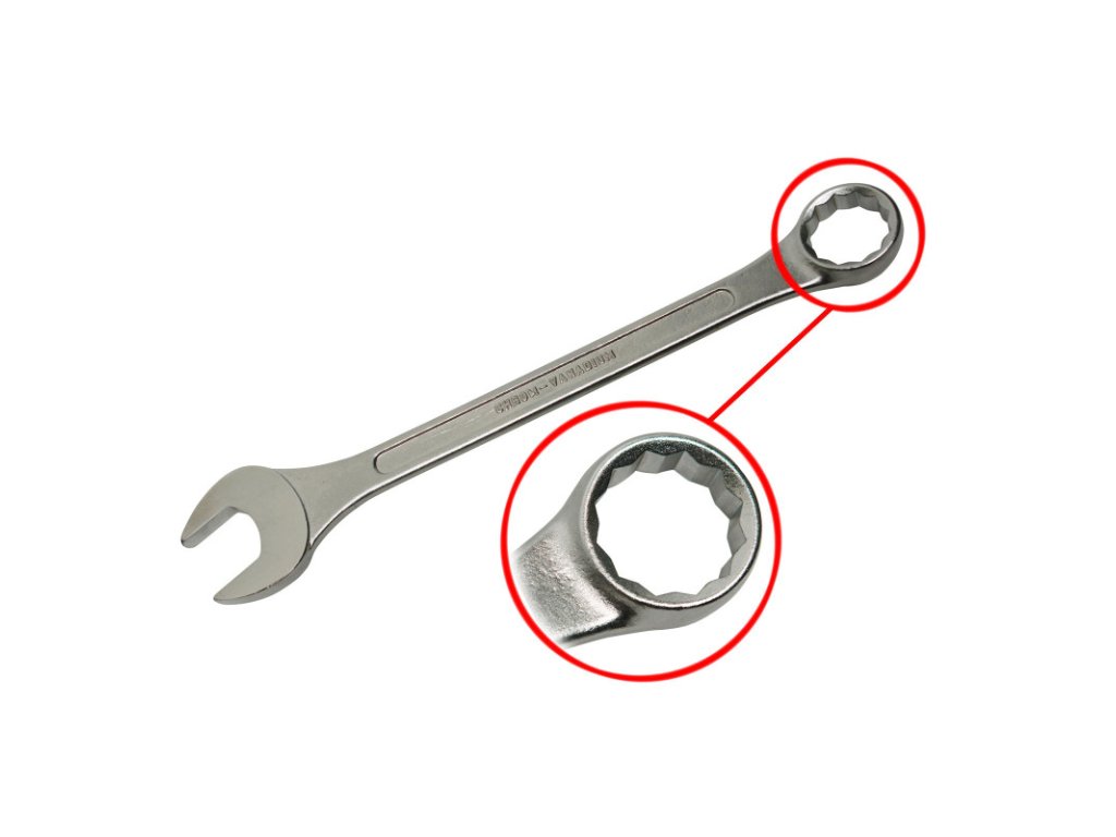 Prstencovo-vidlicový kľúč z chróm-vanádiovej ocele. Matne pochrómovaný driek, lesklá hlava. Prstencovo-vidlicový kľúč z chróm-vanádiovej ocele. Matne pochrómovaný driek, lesklá hlava.Otvor kľúča: 18 mm