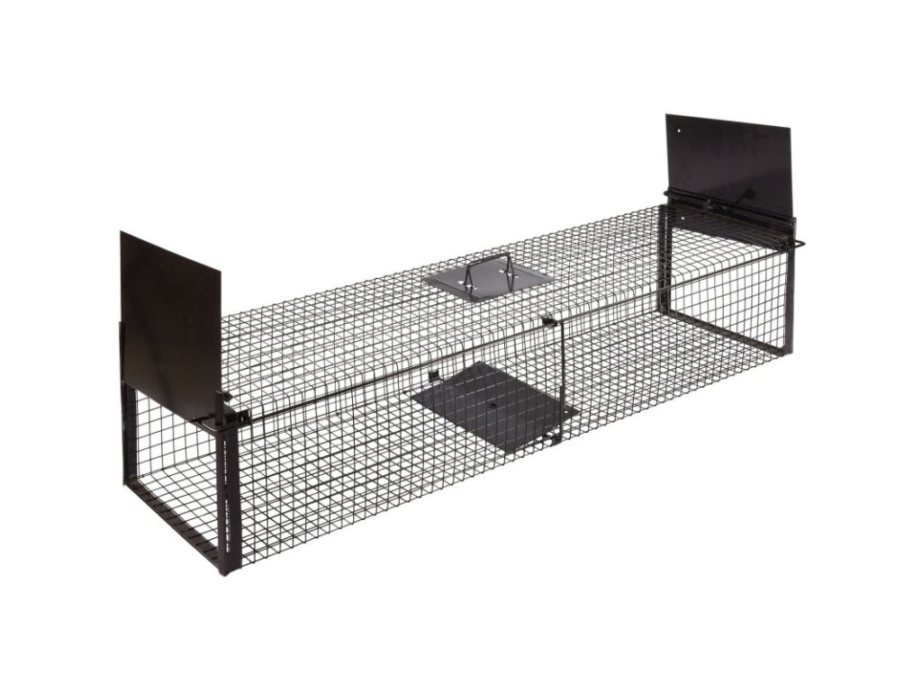 Dvojdverová odchytová pasca je určená na chytanie líšok, túlavých mačiek a psov, kún, lasíc, tchorov atď. Ťažké kovové padacie dvere na pravej aj ľavej strane s automatickým zablokovaním. Dlhá životnosť vďaka povrchovej úprave práškovaním. Dodáva sa čiastočne zmontovaná. Vnútorné rozmery (DxšxV): 150 x 38 x 28 cmHrúbka drôtu: 2,4 mm