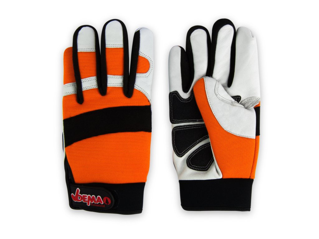 Ochranné rukavice pre ochranu rúk proti porezaniu predovšetkým pri práci s reťazovou pílou. Vyrobené a preskúšané podľa normy EN 381-7. Pás uzatvárateľný na suchý zips. Potiahnutý povrch dlane pre extra priľnavosť, oranžová signálna farba. Ochranná funkcia na ľavej rukavici.Ochranné rukavice pre ochranu rúk proti porezaniu predovšetkým pri práci s reťazovou pílou. Vyrobené a preskúšané podľa normy EN 381-7. Pás uzatvárateľný na suchý zips. Potiahnutý povrch dlane pre extra priľnavosť, oranžová signálna farba. Ochranná funkcia na ľavej rukavici.