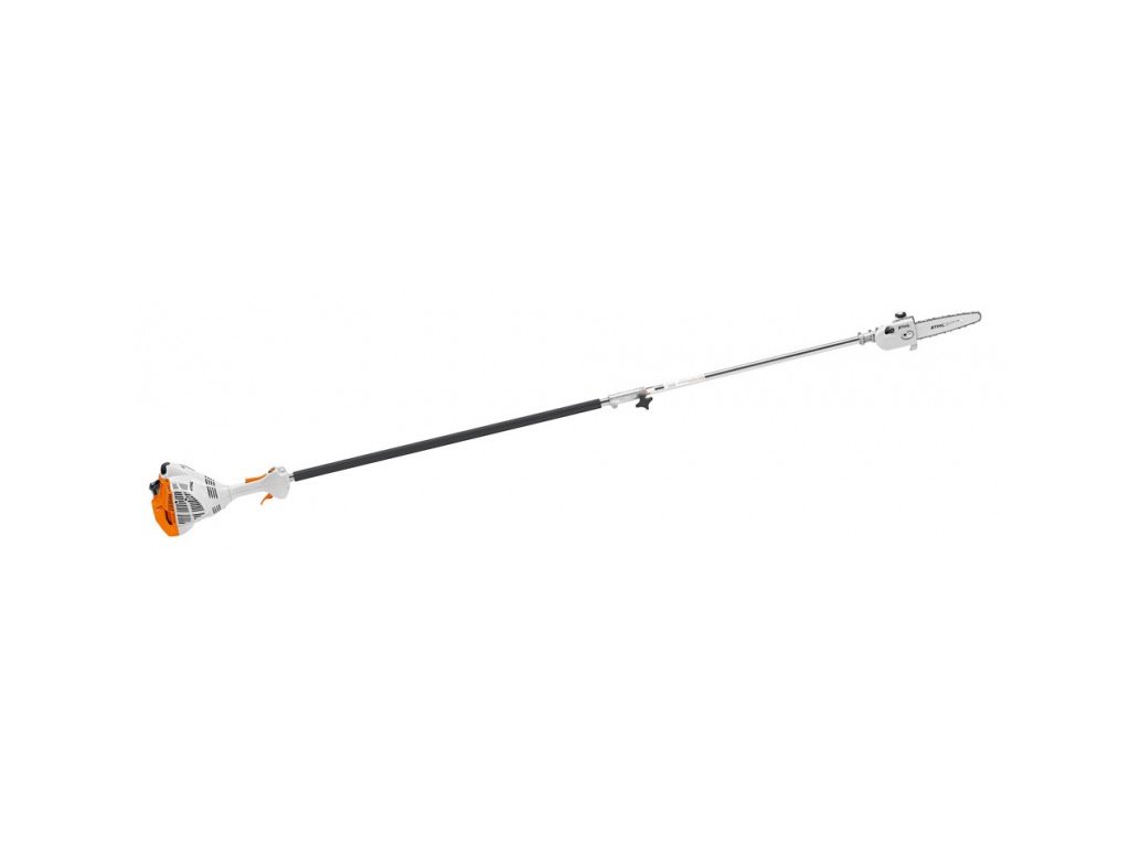 Novú generáciu benzínových vyvetvovacích píl zastupuje obzvlášť praktický model STIHL HT 56 C-E. Pri svojej dĺžke 280 cm poľahky a bezpečne dosiahnete zo zeme na konáre až do výšky 4 metrov. O pohodlie pri páci sa stará technológia ErgoStart (E) a vďaka technológii 2-MIX má motor vyššiu účinnosť aj znížený obsah spalín oproti motorom s rovnakým objemom. Hriadeľ píly je deliteľný pre jednoduchý transport a uskladnenie.Zdvihový objem | 27,2 cm3 |