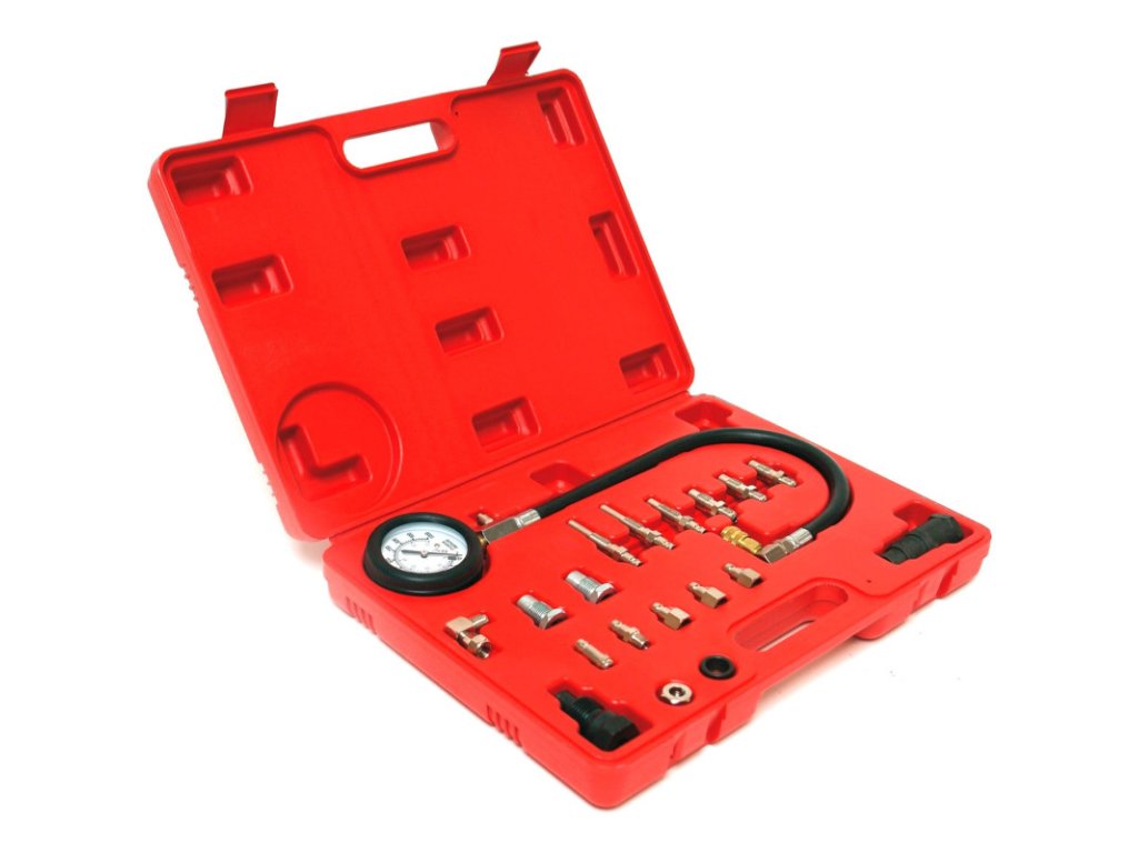 Tester na meranie tlaku vo valcoch dieslových motorov. Vhodný pre motory so systémom common-rail aj so systémom čerpadlo - vstrekovacia tryska. Vrátane uhlovej prípojky pre ťažko prístupné miesta. Rýchlospojka na jednoduchú a rýchlu montáž a demontáž. Manometer s tlačidlom na vynulovanie. Tester na meranie tlaku vo valcoch dieslových motorov. Vhodný pre motory so systémom common-rail aj so systémom čerpadlo - vstrekovacia tryska. Vrátane uhlovej prípojky pre ťažko prístupné miesta. Rýchlospojka na jednoduchú a rýchlu montáž a demontáž. Manometer s tlačidlom na vynulovanie.Manometer: 0 - 70 bar / 0 – 1000 Psi