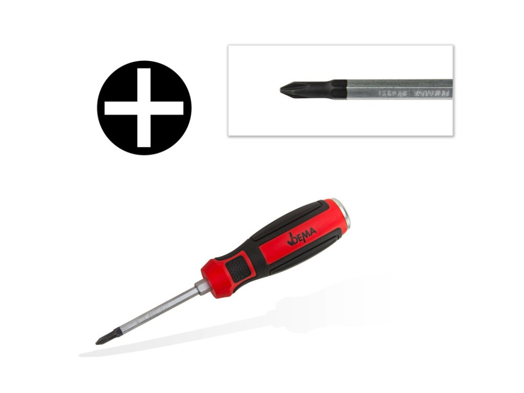 Skrutkovač z kalenej chróm-vanádiovej ocele s údernou plochou. Má magnetický hrot, ktorý zjednodušuje uťahovanie skrutiek a dokáže pritiahnuť roztratené skrutky.Skrutkovač z kalenej chróm-vanádiovej ocele s údernou plochou. Má magnetický hrot, ktorý zjednodušuje uťahovanie skrutiek a dokáže pritiahnuť roztratené skrutky. Na uvoľnenie aj pevne utiahnutých skrutiek je na konci kovová úderná plocha. Ergonomicky tvarovaná plastová rukoväť s protišmykovou gumenou úpravou. Na konci šesťhranného drieku pri rúčke je úchytka na vidlicový kľúč pre zvýšenie krútiaceho momentu pri skrutkovaní.